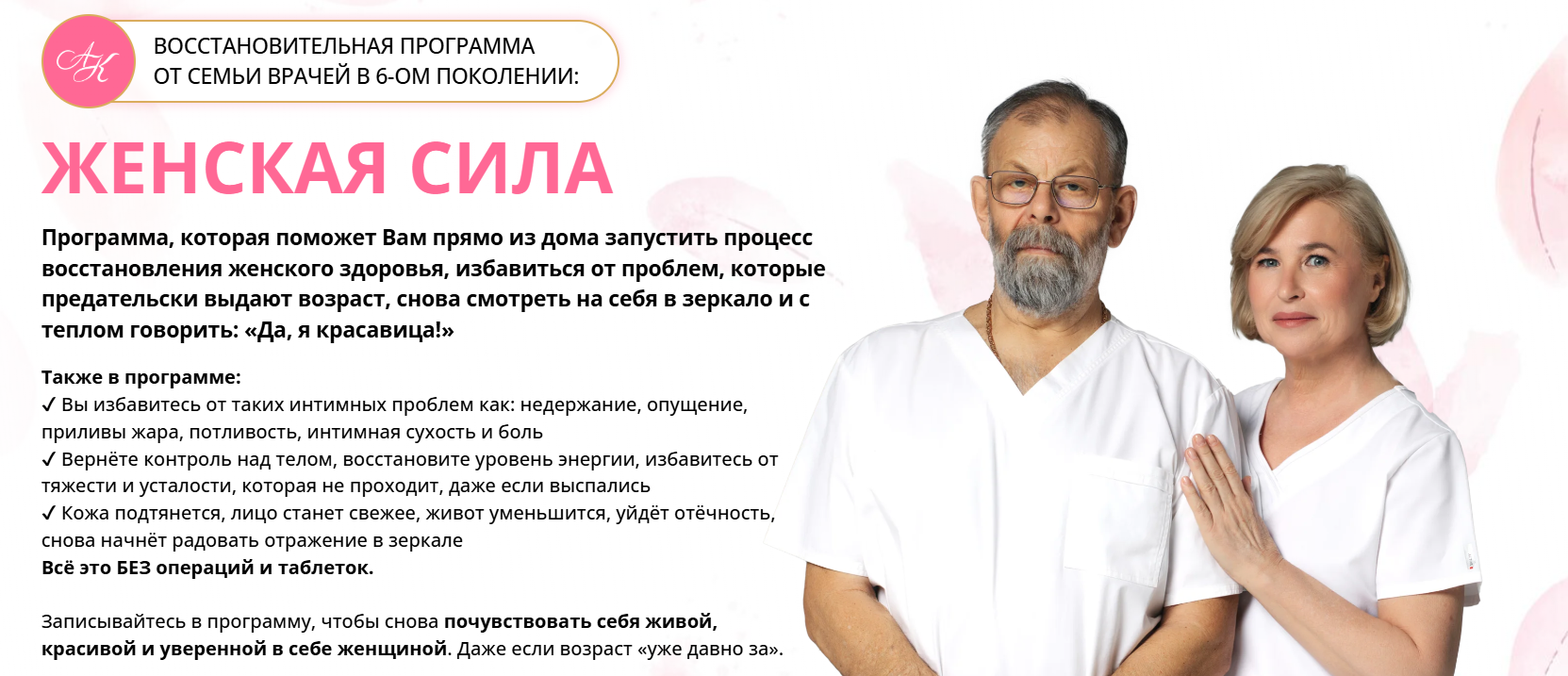 На курсе вы получите секреты долголетия и всего за 2 месяца уберете минус 10 лет с лица, избавитесь от лишних кг, наладите все аспекты женского здоровья и красоты